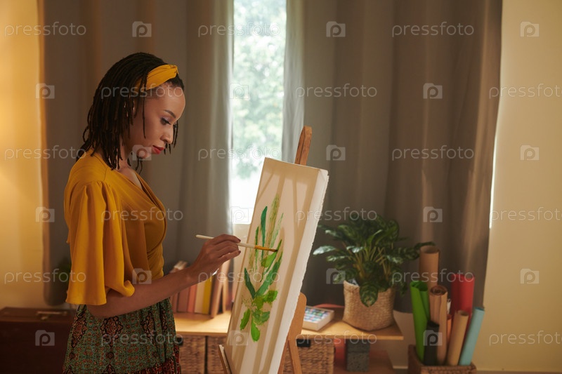 Черная женщина рисует лист