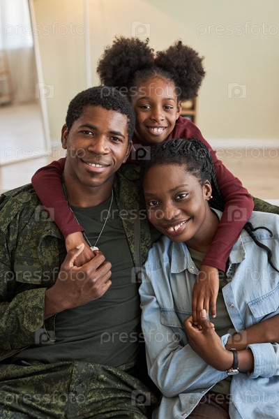 Афроамериканская семья со своим военным отцом