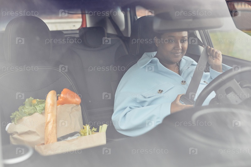 Молодая чернокожая женщина за рулем