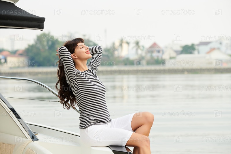 Красивая женщина на яхте