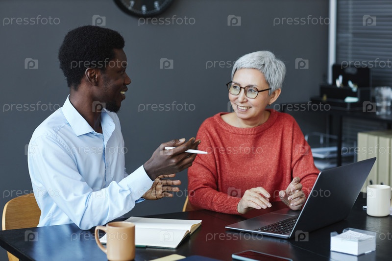 Старшая деловая женщина, работающая с коллегой за столом в офисе