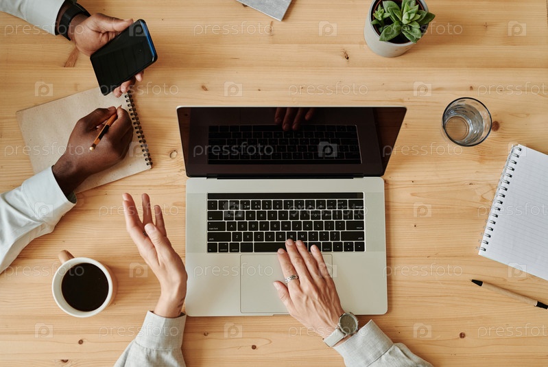 Коллеги, работающие в команде за столом