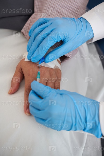 Врач удаляет внутривенный катетер