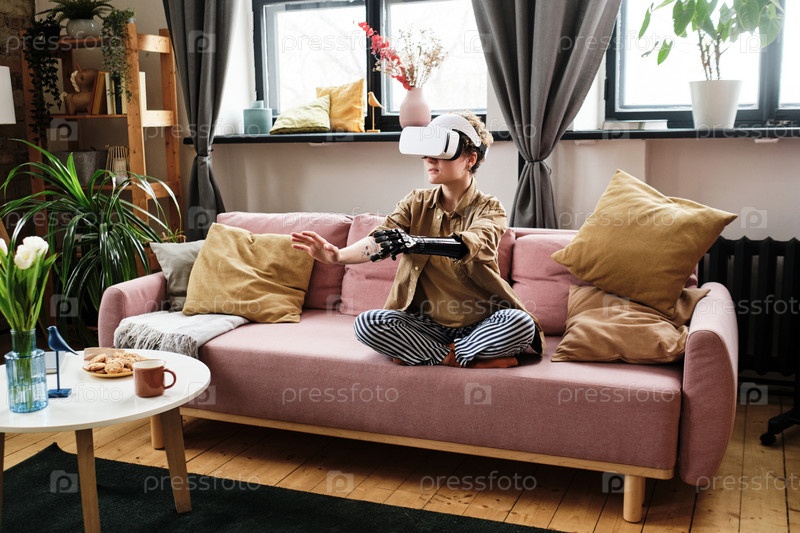 Девушка играет в виртуальные игры дома