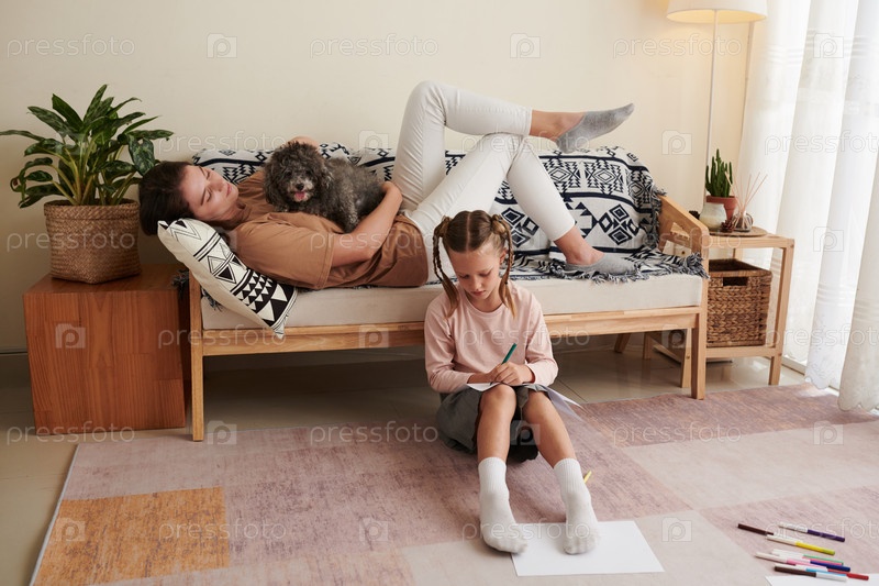 Мать контролирует дочь, выполняя домашнее задание