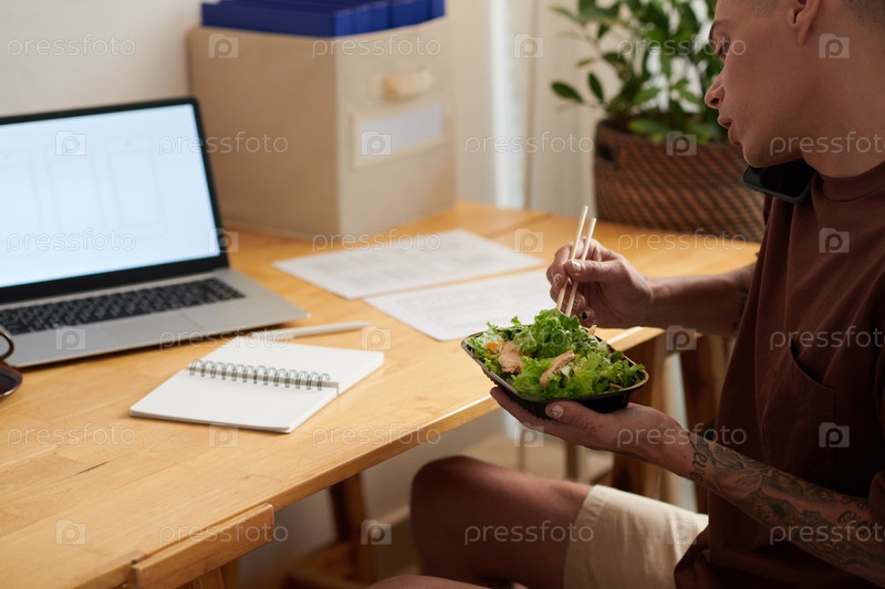 Человек, который ест салат на обед