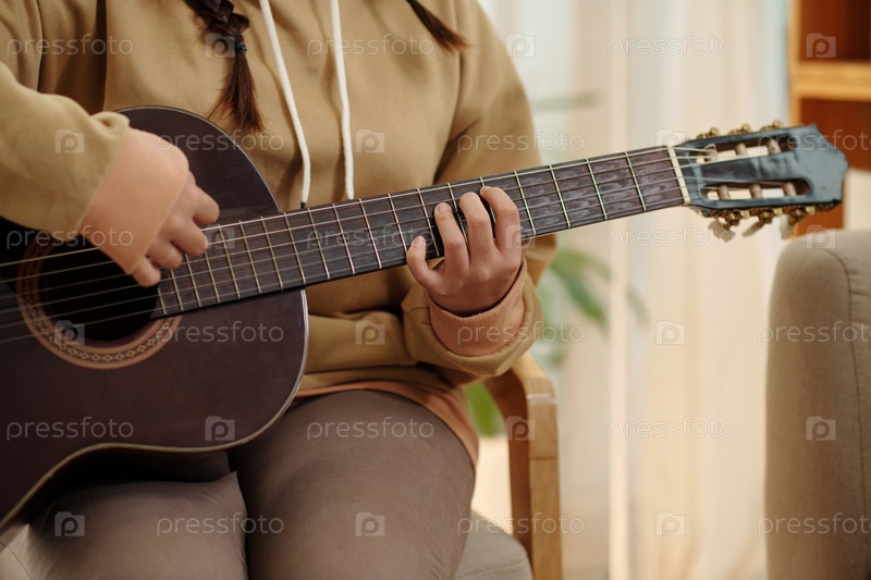 Девушка-подросток играет на гитаре