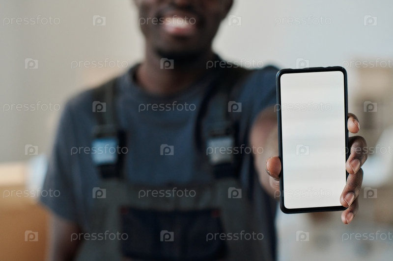 Работник показывает экран смартфона