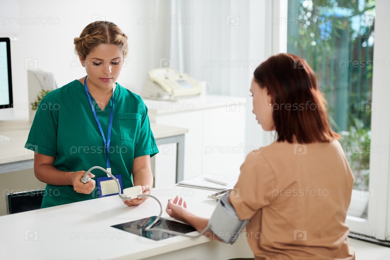 Медсестра измеряет кровяное давление