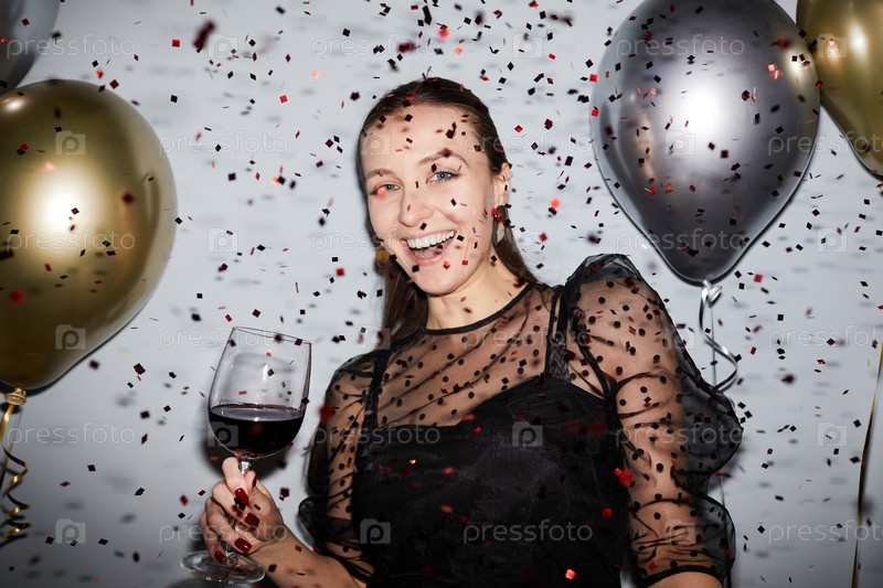 Молодая женщина вечерится в душе с конфетти