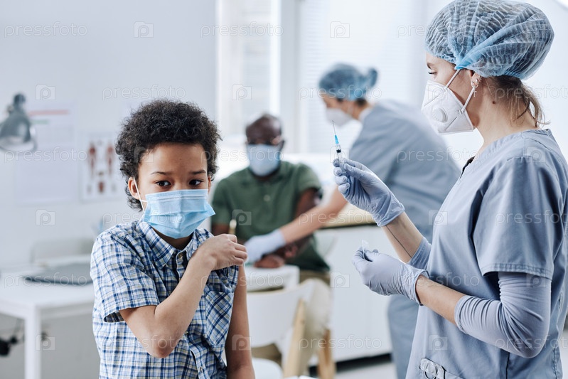 Медсестра дает вакцину ребенку в больнице