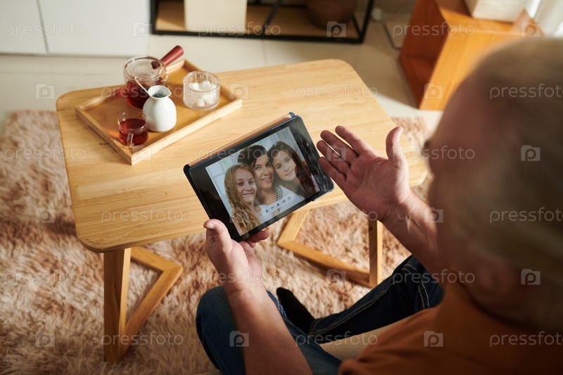 Старший мужчина видео звонит семье