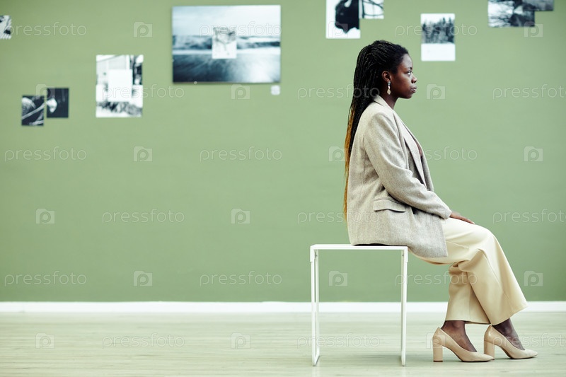Черная женщина, сидящая в художественной галерее