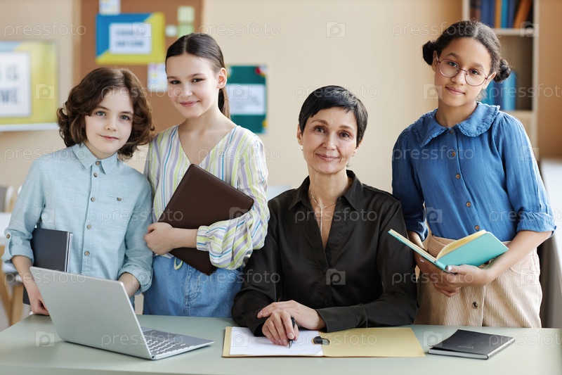 Учительница преподает урок своим ученикам