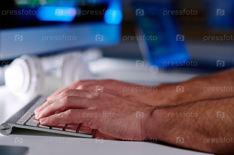 Сосредоточьтесь на руках старшего ИТ-менеджера, нажимающего клавиши компьютерной клавиатуры