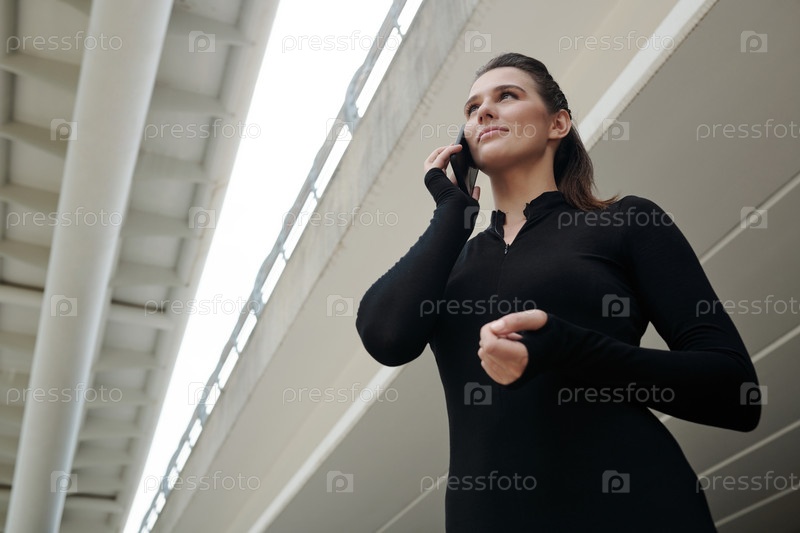 Спортсменка разговаривает по телефону