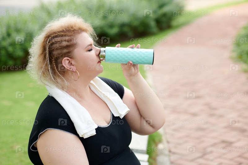 Кривая женщина пьет воду