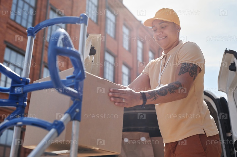 Женщина-работница по доставке в солнечном свете