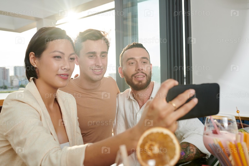 Друзья делают селфи в шикарном баре после того, как выпили несколько напитков