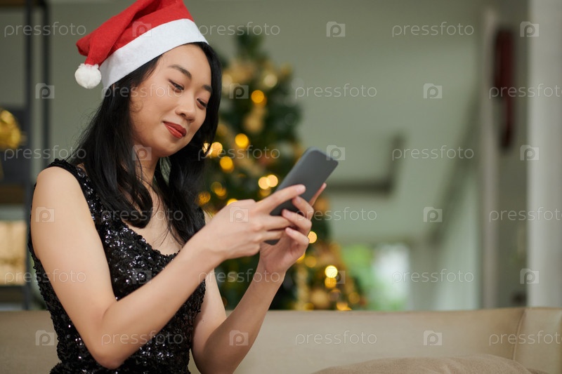Женщина, отправляющая сообщения друзьям в канун Рождества