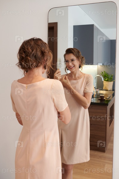 Счастливая женщина, стилизующая волосы