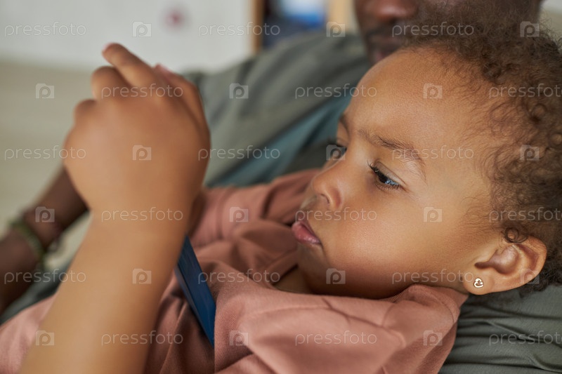 Маленькая девочка играет в игру на смартфоне