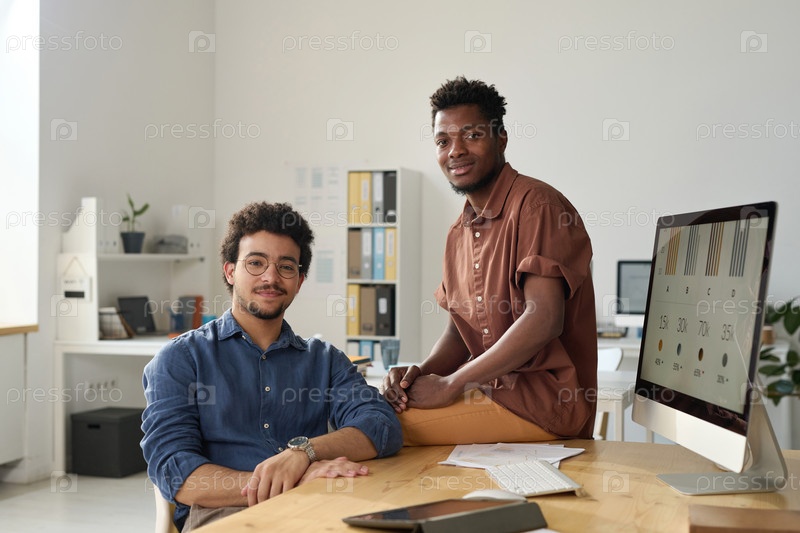 Многонациональные коллеги, работающие вместе в офисе