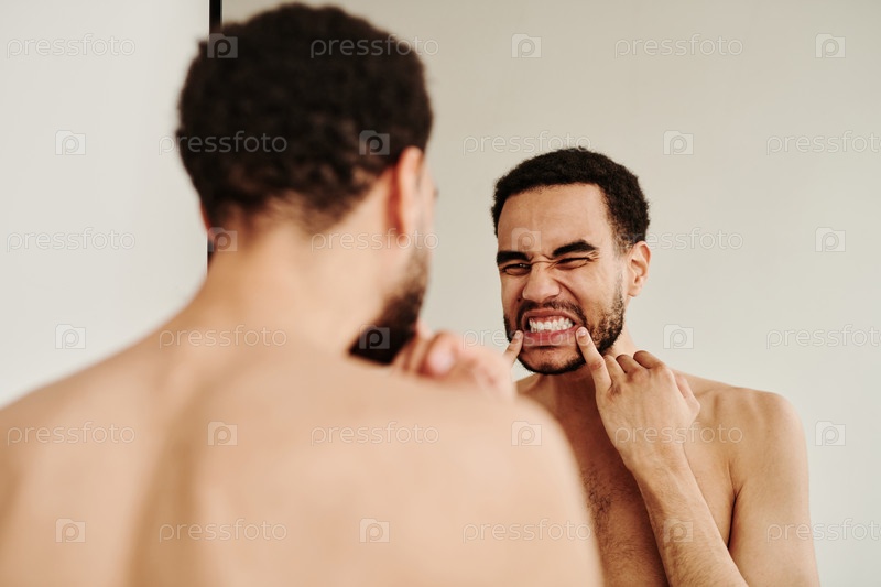 Молодой человек проверяет здоровье своих зубов