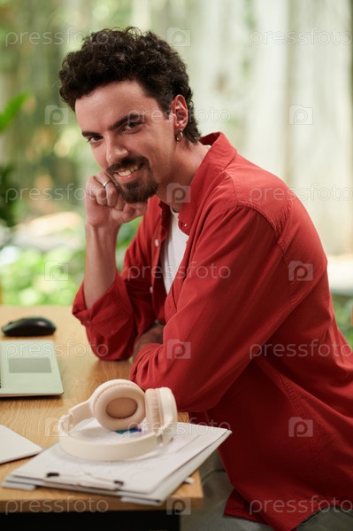 Мужчина, работающий в домашнем офисе
