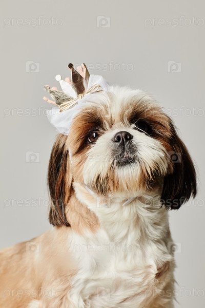 Щенок Шицзу носит корону на белом фоне