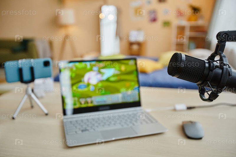 Сосредоточьтесь на микрофоне, висящем перед камерой против ноутбука