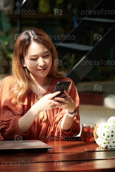 Женщина, читающая текстовые сообщения