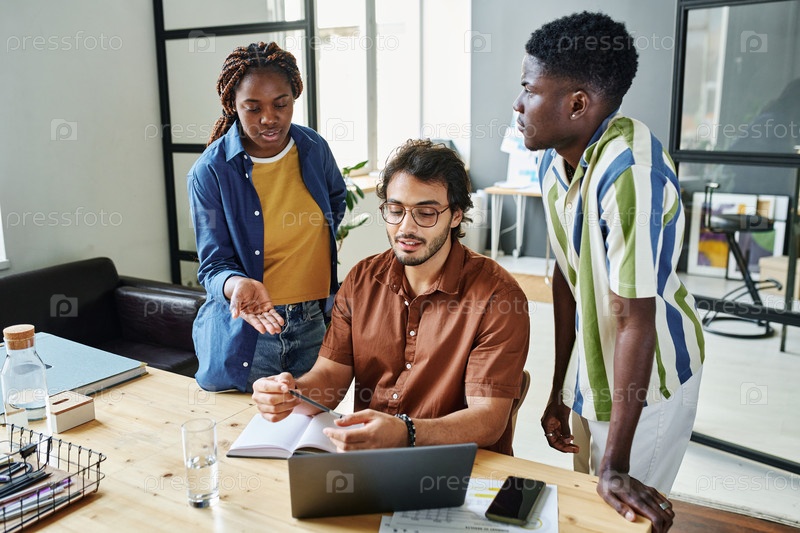 Три молодых уверенных в себе дизайнера обсуждают информацию онлайн