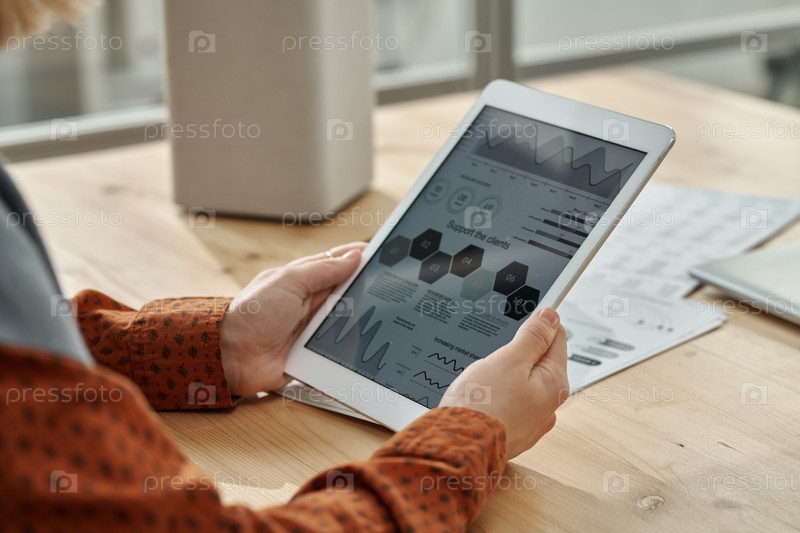 Деловая женщина изучает графики на планшетном компьютере