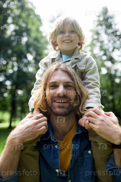 Отец несет сына на плечах