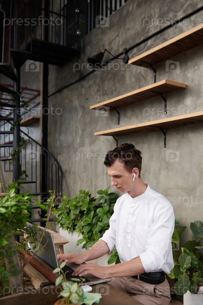 Молодой предприниматель, работающий на ноутбуке