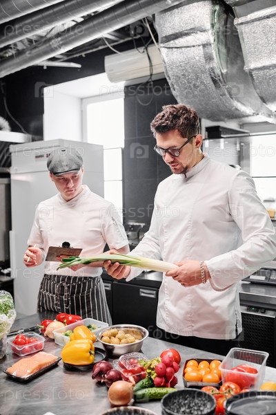 Шеф-повар проверяет доставленные овощи перед приготовлением