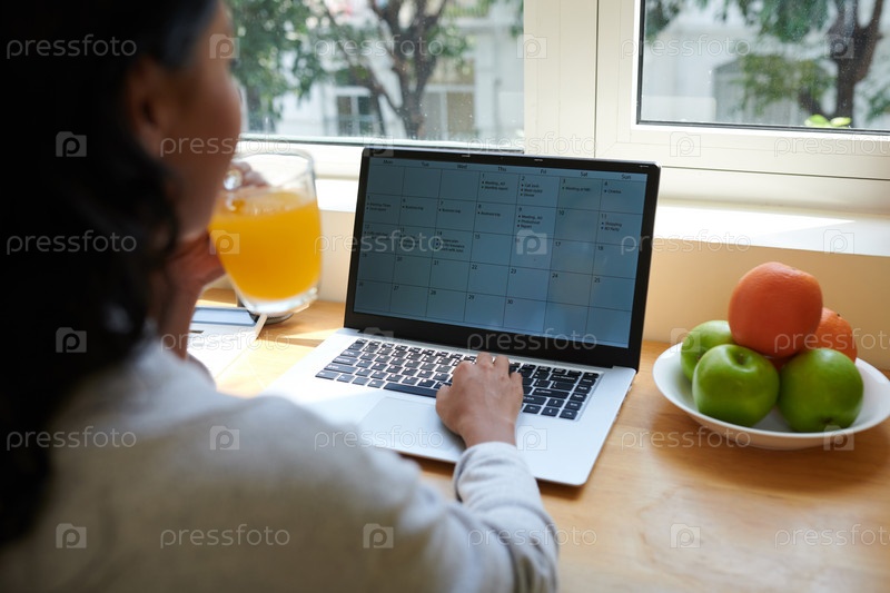 Женщина, проверяющая календарь на ноутбуке