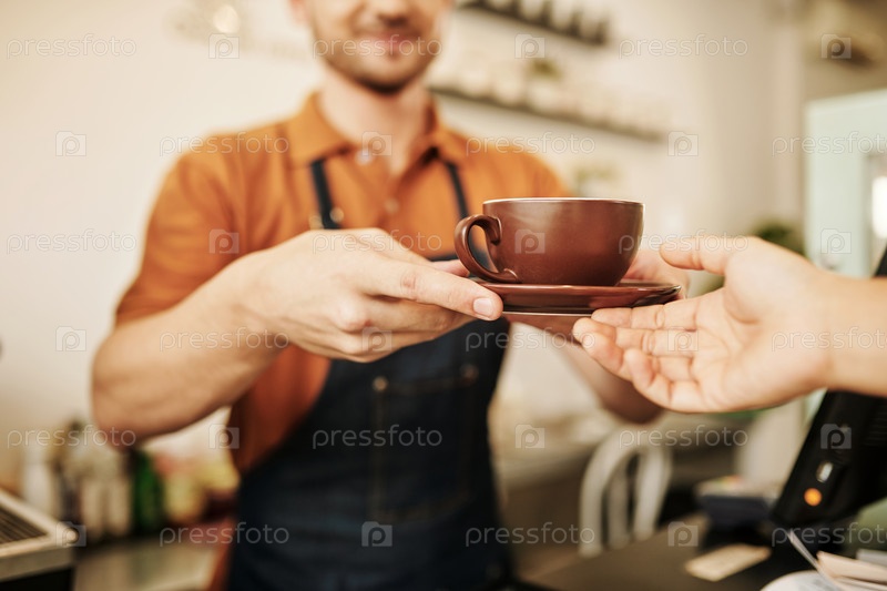 Басита дает капучино клиенту