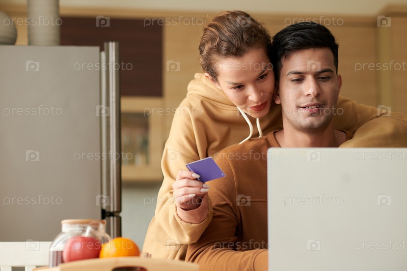 Пара, заказывающая ежедневные продукты онлайн