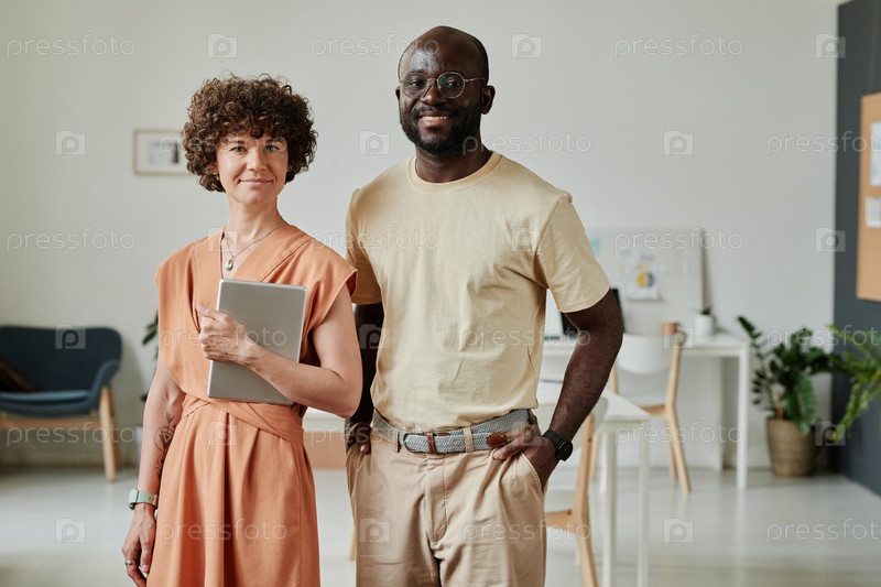 Молодые коллеги, работающие вместе в офисе