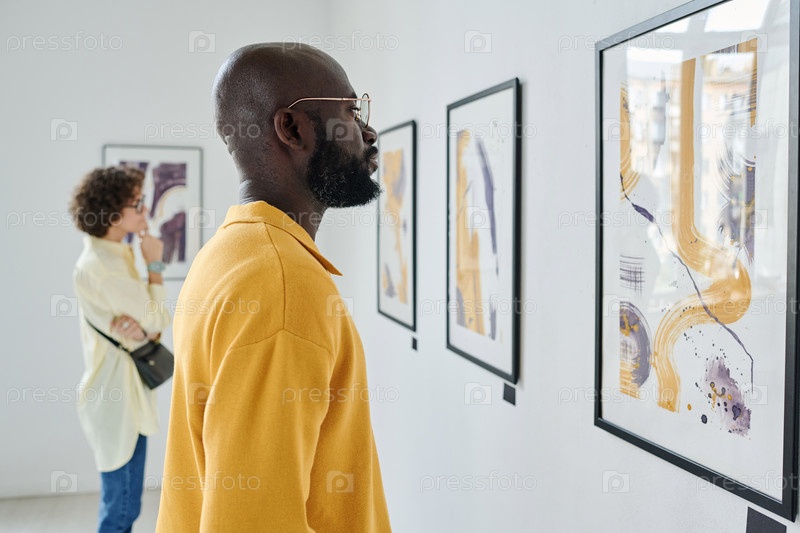 Люди, посещающие художественную выставку в галерее