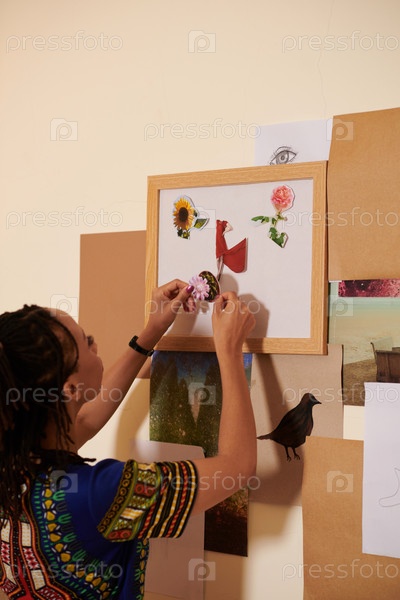 Женщина делает вдохновляющий коллаж