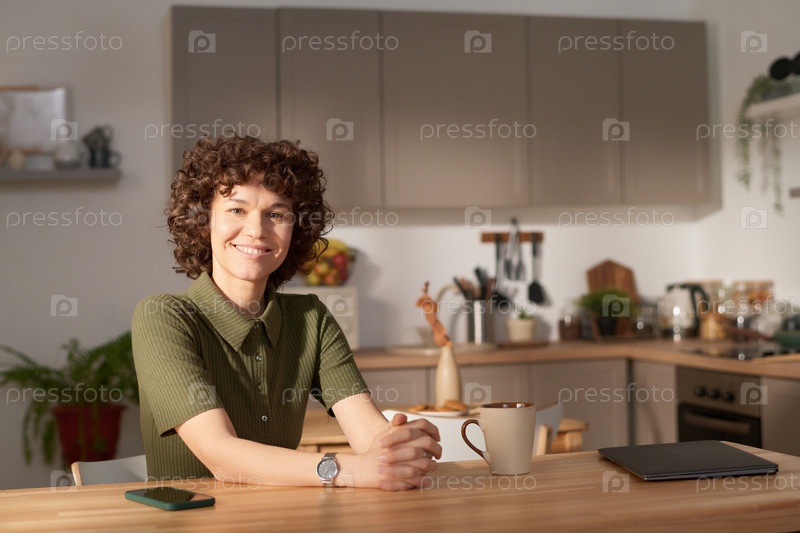 Молодая девушка сидит на домашней кухне