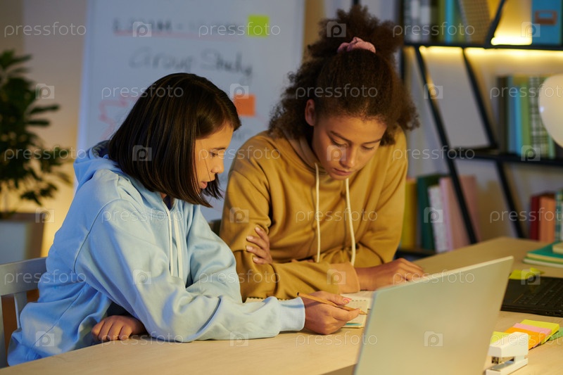 Ученица объясняет тему своему другу