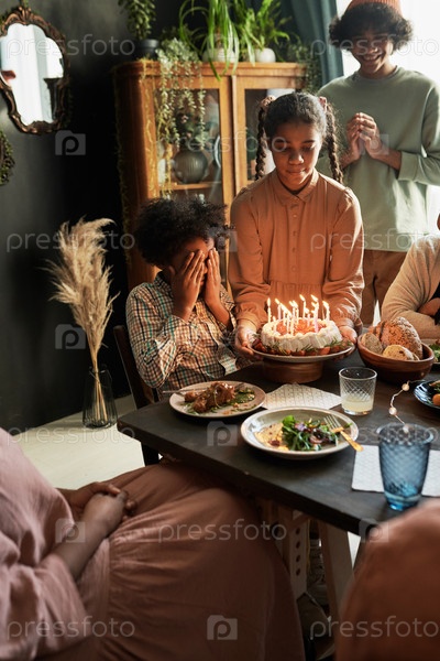 Маленький мальчик празднует день рождения с семьей