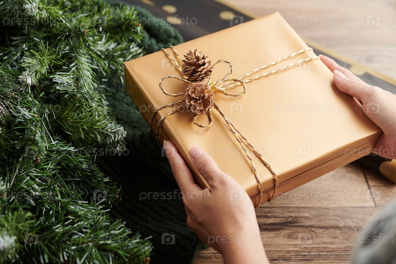 Руки, держащие рождественский подарок