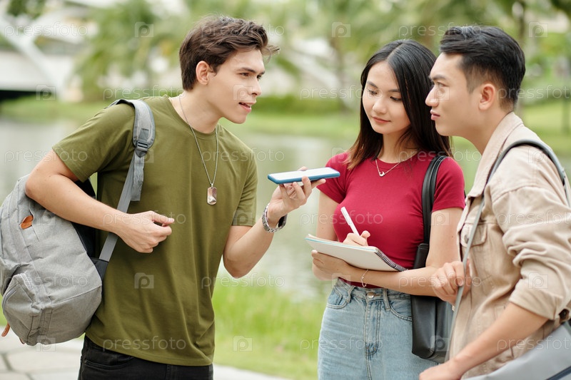 Студенты, слушающие голосовое сообщение