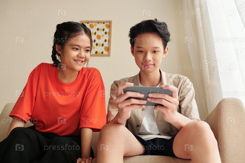Дети играют на портативной игровой консоли