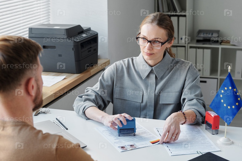 Консульский сотрудник, одобряющий заявление на визу